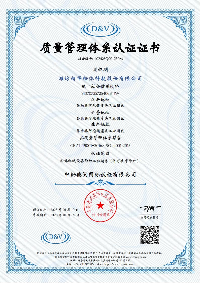 · 2000年濰坊市精華粉體工程設(shè)備有限公司建廠;